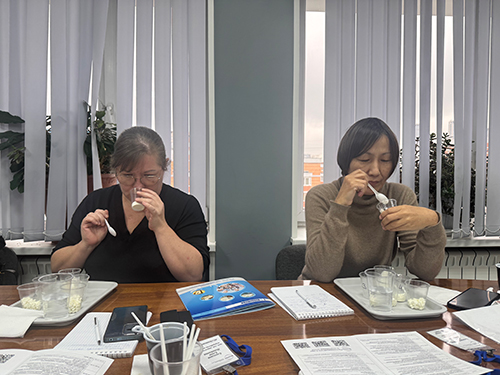 Завершающим этапом дня стала дегустация творога и сметаны различных производителей, выявление отклонений от органолептических требований и влияние закваски на консистенцию, внешний вид, запах и вкус.
